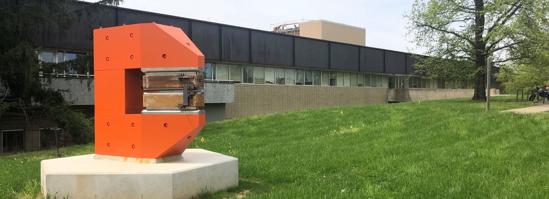In conjunction with IU’s bicentennial celebrations, we commemorated IUCF’s important historical impact and the technical innovation of its design with a monument located near the entrance to the former IUCF building (now Multidisciplinary Engineering and Sciences Hall and the location of CEEM—the Center for the Exploration of Energy and Matter). While the facility was stripped of most of its accelerators and experimental equipment when scientific and medical use ceased in 2014, some of us intervened to save the spare IUCF injector cyclotron magnet from destruction. We installed the magnet as a sculpture/scientific artifact and hope to add a commemorative plaque soon.