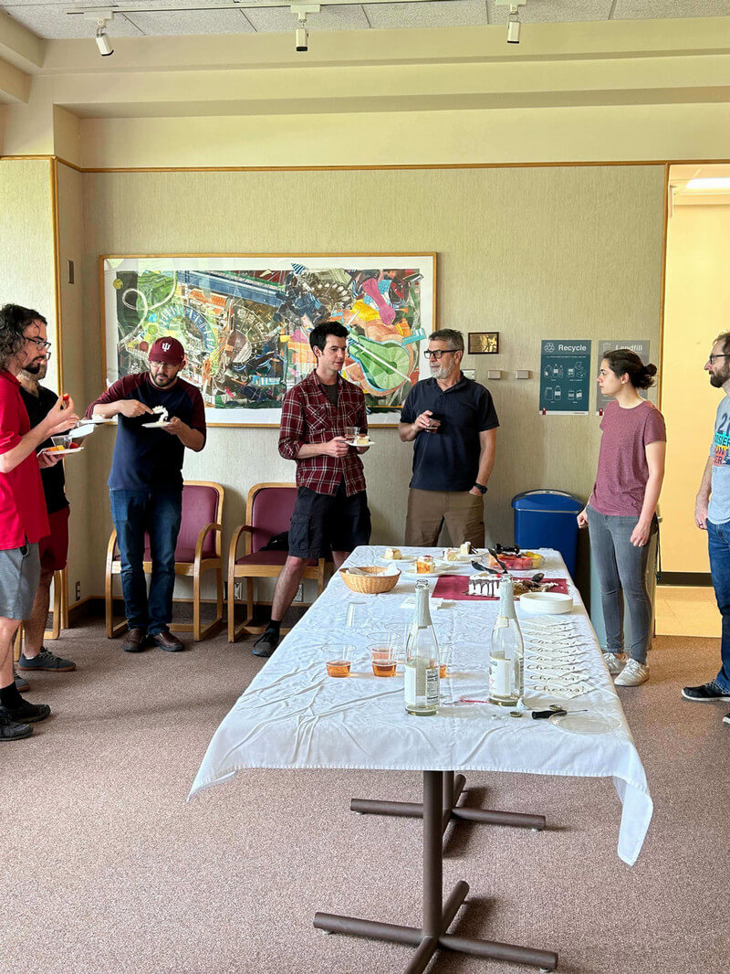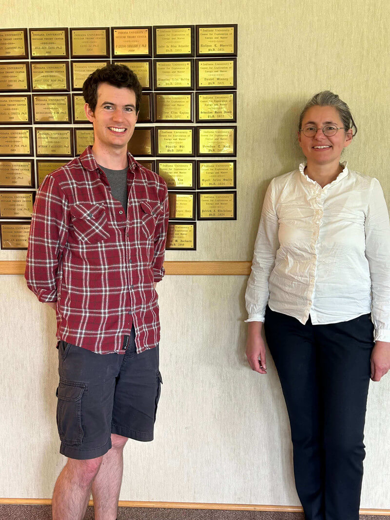 Our celebration of Dr. Patrick Blackstone's successful doctoral dissertation defense, with his supervisor Dr. Emilie Passemar.