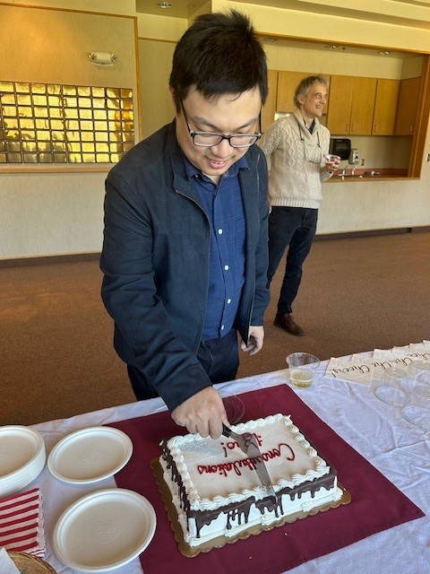 Our celebration of Dr. Hao Lu's successful doctoral dissertation defense, with his supervisor, Dr. Mike Snow.