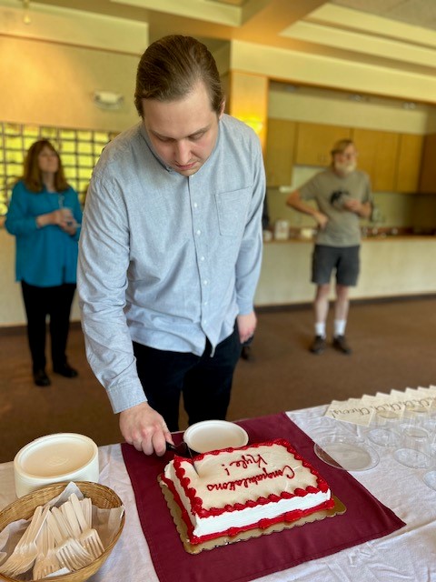 Our celebration of Dr. Kyle Steffen's successful doctoral dissertation defense, with his supervisor, Dr. Mike Snow.