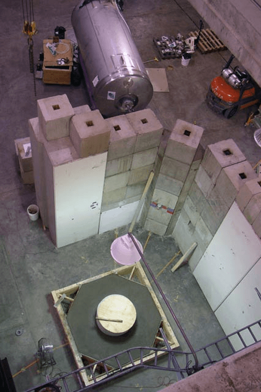 Installation of the second TMR within the new vault. Shielding is also in place around the SANS beam line, and wall penetrations for two future instruments are visible on the left.