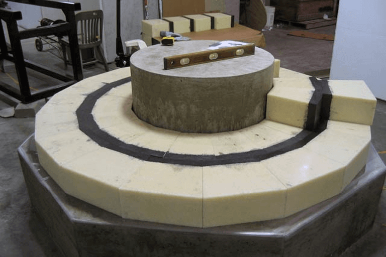 The concrete pier that will support the LENS TMR (target/moderator/reflector) assembly is poured. In the foreground the radiation shielding around the TMR vault is taking shape.