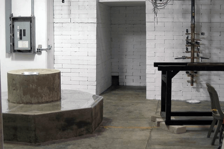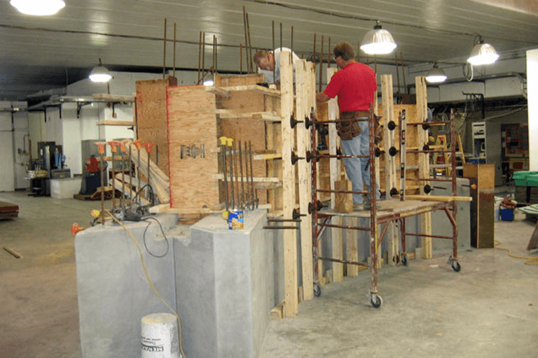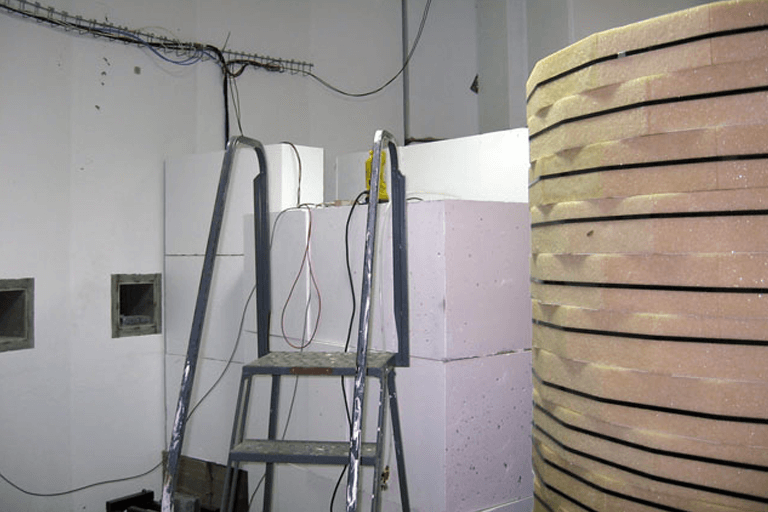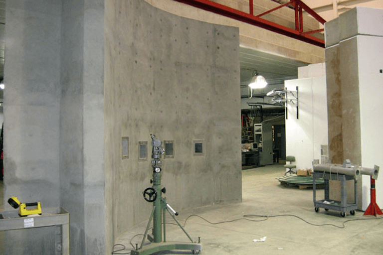 The vault will be finished with standard wall blocks, but this section is pour to eliminate any seams near the four penetrations for neutron instruments.