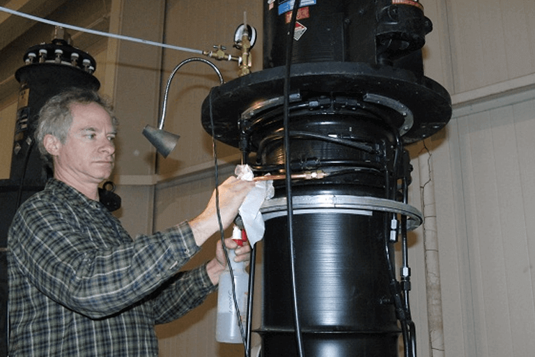 The LENS cryogenic moderator system under development in the LENS staging area.