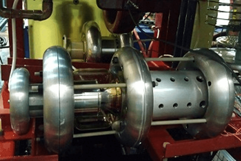 Second high-voltage tank prepared for the installation of the third klystron which is needed to deliver power to the second DTL section to deliver 13 MeV protons.